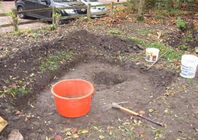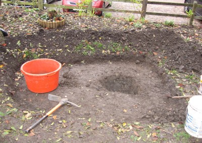 We are experimenting with a wet area to attract dragonflies and amphibians into the garden. The ground is very hard and so the pond is not very deep. If this does not work it will be a case of ‘back to the drawing board’. Watch this space.
