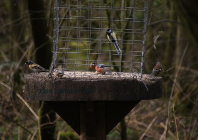 The Bird Feeding Station is a short walk from the lake. If you spend some time at the bird feeding station you could see some of our more unusual birds. From October to early spring the Friends put our food every day and this encourages quite a variety of birds. Most of these are common garden birds but we do get the occasional rarer visitors. You should see robins, Blackbird, Blue Tit, Coal Tit, Great Tit, Willow Tit, Chaffinch, Dunnock, Greenfinch, Jay, Magpie, Wren and Great Spotted Woodpecker.